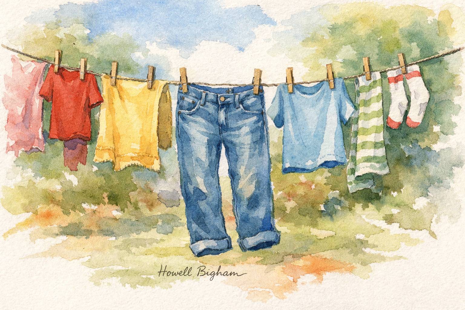 Without clothespins, every piece of clothing faced a departure and arrival time in a neighbor’s yard.